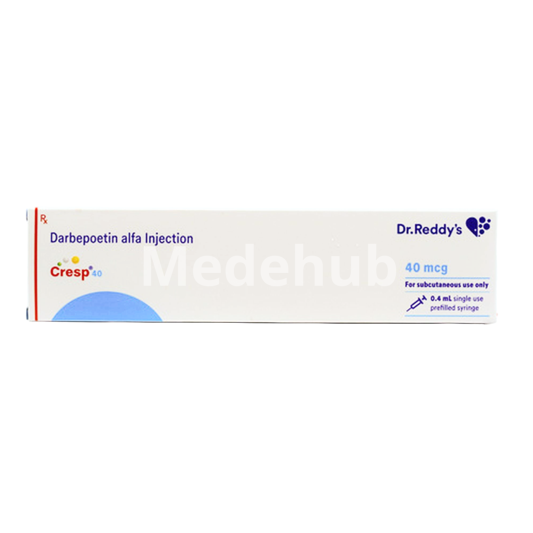 Cresp 40 Injection is used to treat anemia resulting from chronic kidney disease or chemotherapy. It works by stimulating the bone marrow to increase the production of red blood cells.