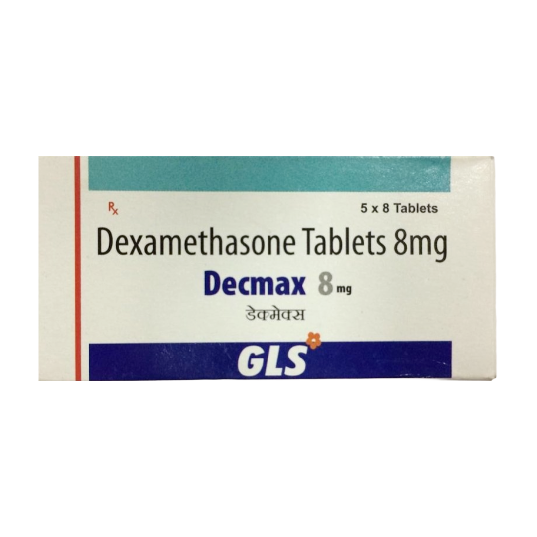 Decmax 8mg Tablet is a synthetic glucocorticoid, similar to natural hormones produced by the adrenal glands that help maintain health. Do not use this medicine if you are allergic to dexamethasone or any of its ingredients, or if you have fungal infections. Inform your doctor if you have liver, kidney, or heart disease; respiratory problems; diabetes; eye conditions; seizures; infections; tuberculosis; or psychiatric disorders before starting treatment. Take it with food to minimize stomach irritation.
