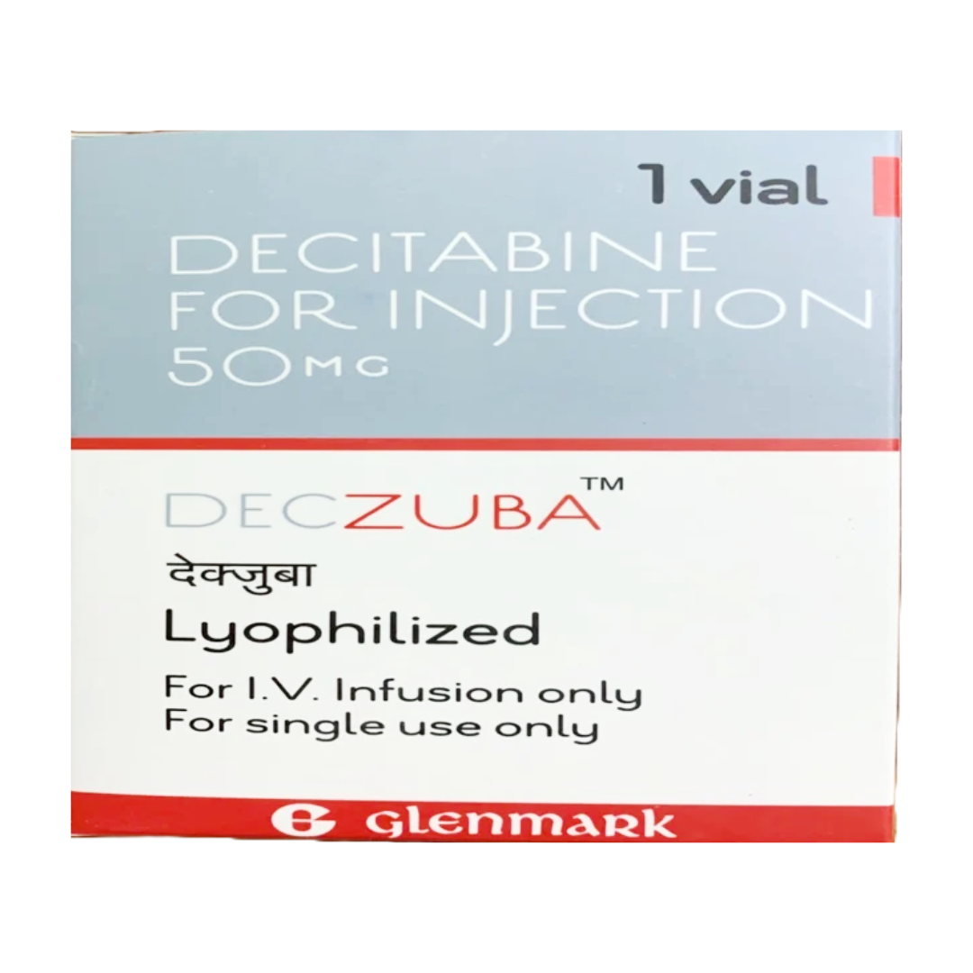 Deczuba 50mg Injection contains decitabine as its active ingredient. It is an antineoplastic medication belonging to the class of DNA methylation inhibitors. This injection is used in the treatment of myelodysplastic syndrome—a group of disorders where the bone marrow produces abnormally shaped blood cells and fails to generate enough healthy ones. It is also prescribed for acute myeloid leukemia (AML), a type of cancer that affects the blood and bone marrow. Deczuba works by inhibiting the growth of cancer cells.