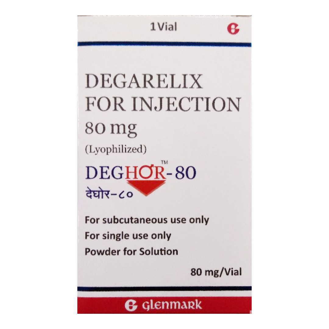 Seek immediate medical attention if you experience symptoms such as dizziness, fever, or signs of infection. During treatment, your doctor may regularly monitor your blood pressure, blood sugar levels, electrolytes, as well as heart, liver, and kidney function to prevent serious health complications. Inform your physician if you have any pre-existing heart, liver, or kidney conditions, as patients with severe organ impairment should use this medication with caution. Deghor 80mg is contraindicated in individuals with known hypersensitivity to degarelix or any of its components.