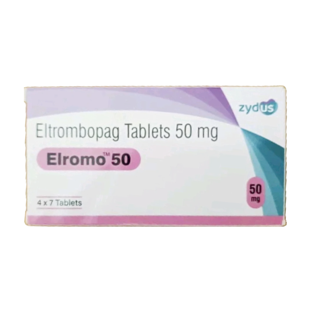 Elromo 50mg Tablet is a thrombopoietin (TPO) receptor agonist containing Eltrombopag as its active ingredient. It is used to treat low platelet counts in individuals with primary immune thrombocytopenia (ITP) or hepatitis C virus (HCV) infection. ITP is an autoimmune condition in which the immune system destroys platelets—cells essential for blood clotting and maintaining blood vessel integrity. A drop in platelet levels can lead to severe bruising and bleeding. Elromo 50mg is also prescribed to adults with severe aplastic anaemia, a condition where the bone marrow fails to produce adequate new blood cells.