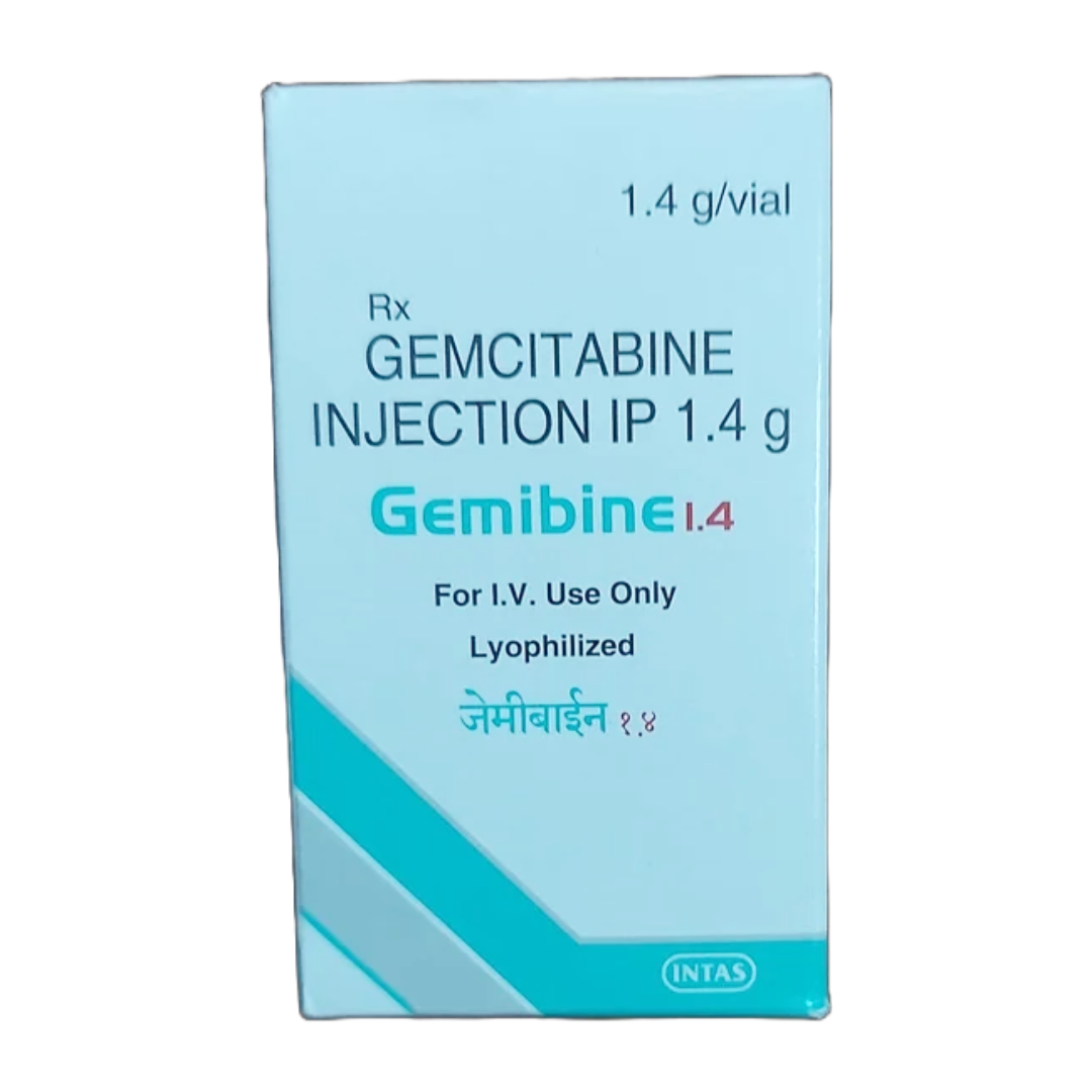 Gemibine 1.4mg Injection is a chemotherapy medication containing gemcitabine as the active ingredient. It is used to treat various types of cancer, including bladder cancer, breast cancer, ovarian cancer, pancreatic cancer, and non-small cell lung cancer. Cancer is a condition in which cells grow uncontrollably and abnormally. Before beginning treatment, inform your doctor if you have any heart conditions, liver or kidney problems, have recently undergone radiotherapy, or received any vaccinations.