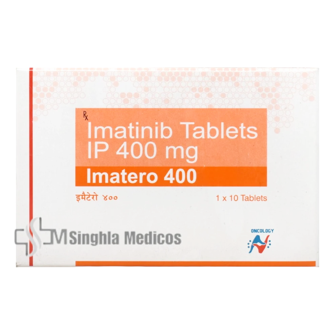 Imatero 400mg tablet contains imatinib as its active ingredient. It is an antineoplastic medication that belongs to the tyrosine kinase inhibitor class. This tablet is used to treat adults and children with chronic myeloid leukemia (CML), a type of cancer where certain abnormal white blood cells grow uncontrollably. It is also indicated for the treatment of Philadelphia chromosome-positive acute lymphoblastic leukemia (Ph-positive ALL).