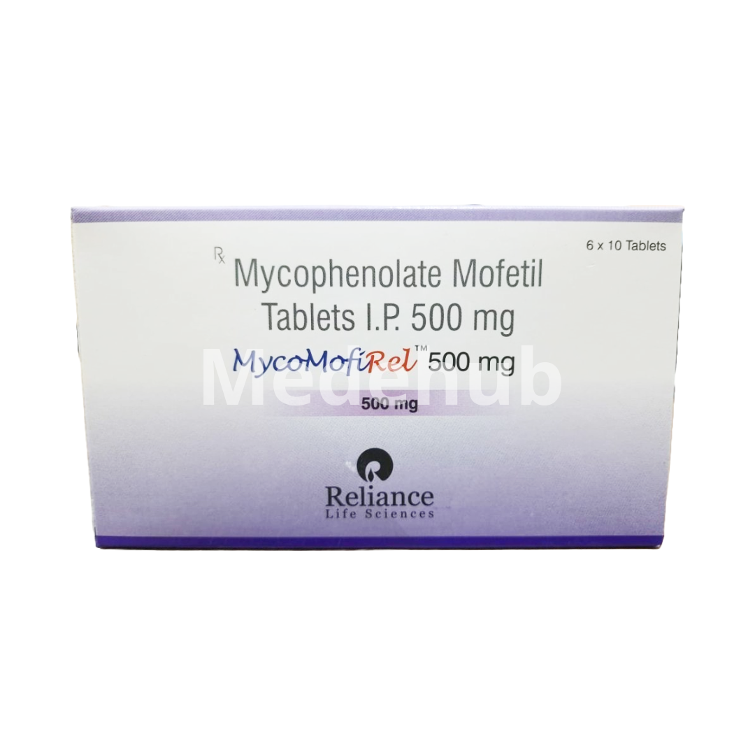 Mycomofirel 500mg Tablet is an immunosuppressant medication used in combination with other drugs to prevent organ rejection following a transplant, such as a kidney, heart, or liver. It works by weakening the body’s immune response so it does not attack the transplanted organ. The dosage and frequency of this medicine depend on the type of transplant you have received, and it is essential to follow your doctor’s instructions carefully. It should be taken on an empty stomach—either at least one hour before or two hours after a meal—unless advised otherwise by your doctor. The tablet should be swallowed whole without crushing, chewing, or breaking. For the best results, take the medicine consistently and continue using it as prescribed, even if you feel well, as it is necessary to maintain its effect in preventing organ rejection.