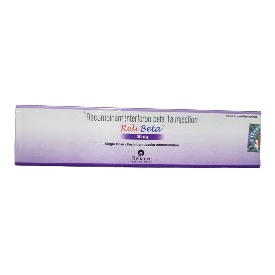 Relibeta 30mcg Injection contains Interferon beta-1a, a type of immunomodulator. Interferons are natural proteins produced by the body to help defend against infections and diseases. The protein in Relibeta is identical to the naturally occurring human interferon. This medication is prescribed for the treatment of relapsing forms of multiple sclerosis (MS)—an autoimmune disorder that affects the brain and spinal cord (central nervous system).