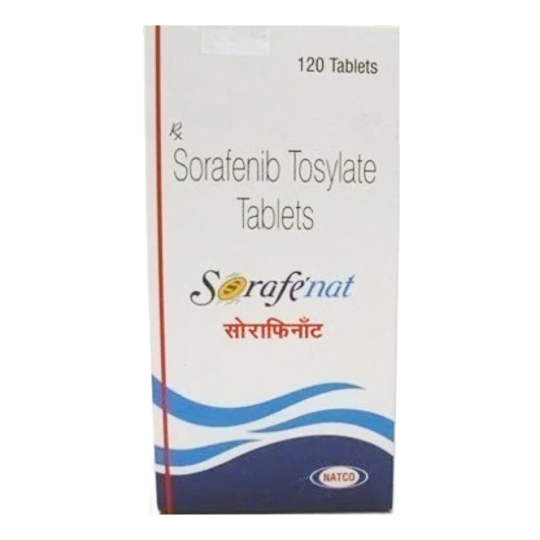 Sorafenat 200mg Tablet is an anticancer medication containing the active ingredient Sorafenib. It is prescribed for the treatment of advanced renal cell carcinoma (kidney cancer), advanced hepatocellular carcinoma (liver cancer) in patients who are not suitable for surgery, and differentiated thyroid cancer in patients unresponsive to radioactive iodine therapy.