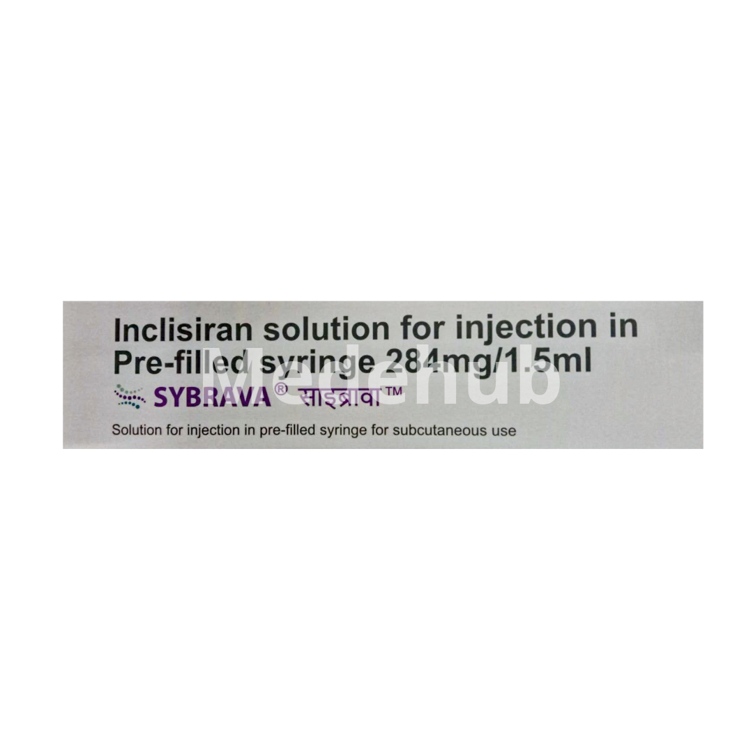 Sybrava 284 mg Injection contains Inclisiran as its active ingredient, a medication classified under proprotein convertase subtilisin/kexin type-9 (PCSK9) inhibitors. It is the first and only small interfering RNA (siRNA) therapy developed to reduce low-density lipoprotein (LDL) cholesterol levels. Sybrava is prescribed as an add-on to statin therapy and dietary modifications for patients with primary hypercholesterolemia (high cholesterol).