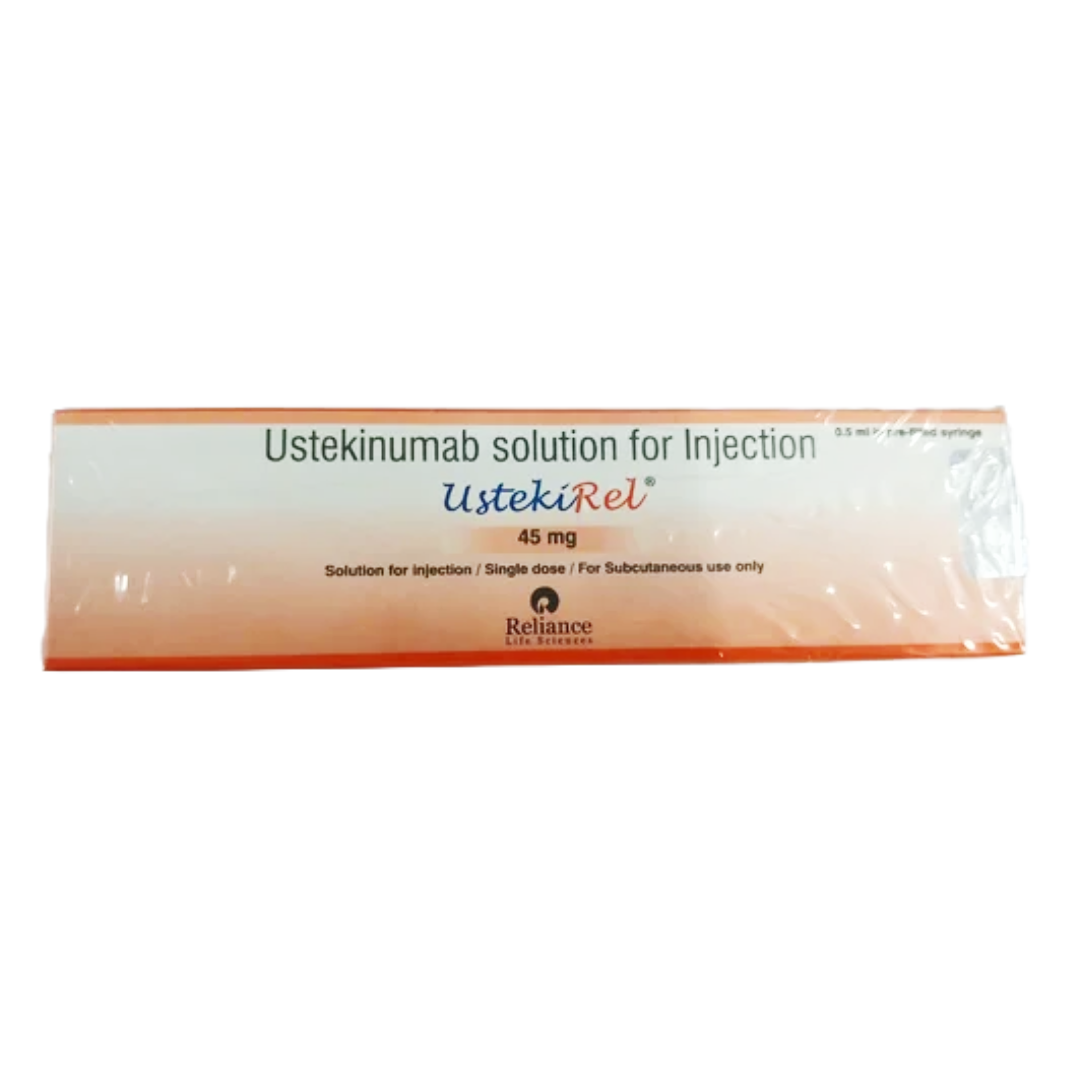 Ustekirel 45mg Injection contains the active ingredient ustekinumab, a monoclonal antibody classified as an interleukin inhibitor. Monoclonal antibodies are specialized proteins that recognize and attach to specific targets in the body. Ustekirel is used to treat moderate to severe plaque psoriasis, a skin condition characterized by red, scaly patches. It is also used, either alone or in combination with other medications, to manage active psoriatic arthritis in adults—a condition that causes joint pain, swelling, and skin lesions.